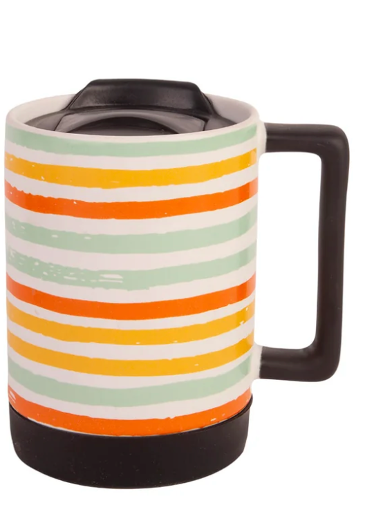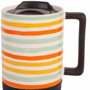 Fun summer travel mugs for your coffee (or favorite hot beverage!) Capacity 15.5 ounce, and feature a plastic lid and ceramic mug design.Â